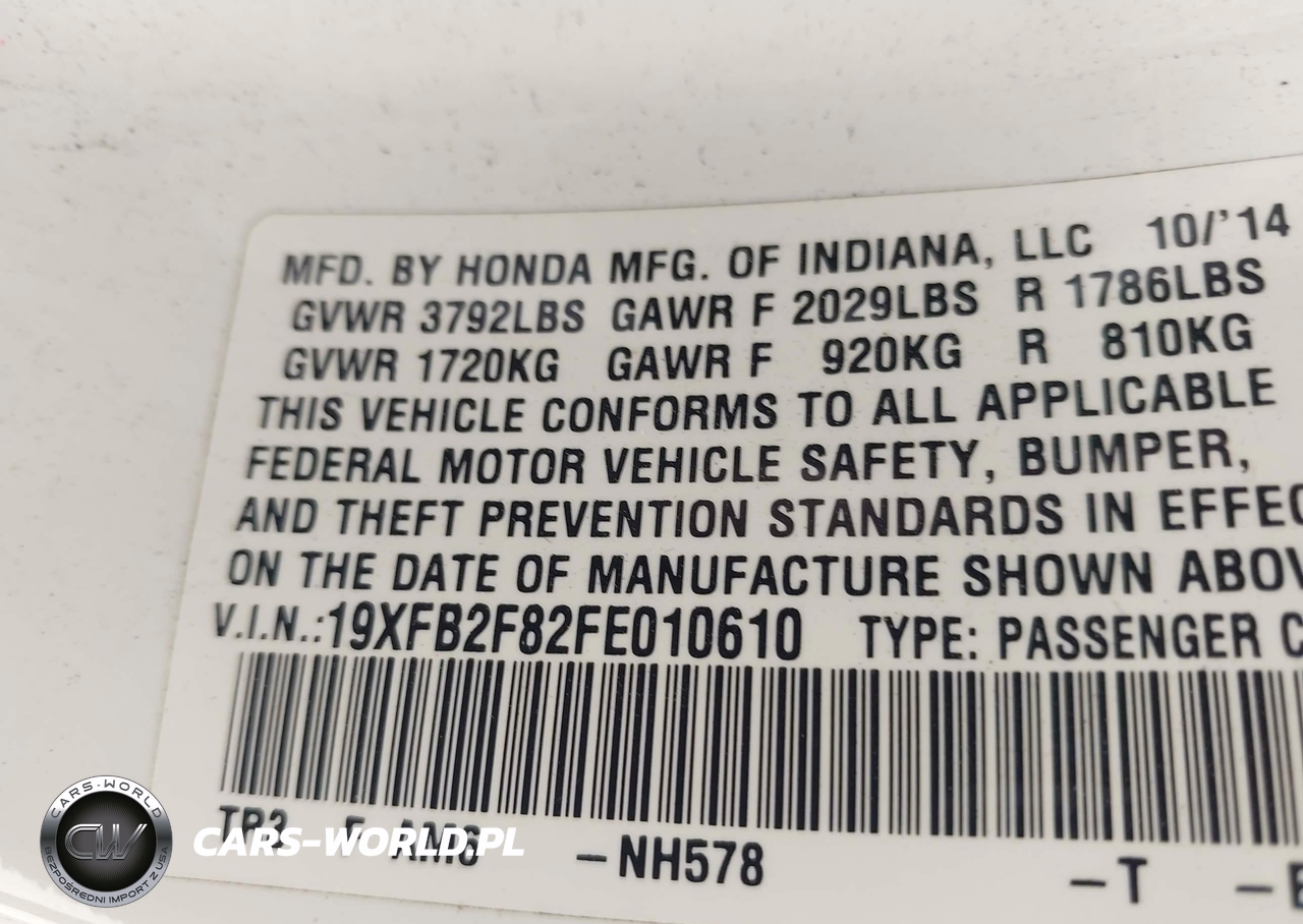 IAAI Nr: I-44641453 VIN: 19XFB2F82FE010610 Port: Houston, TX