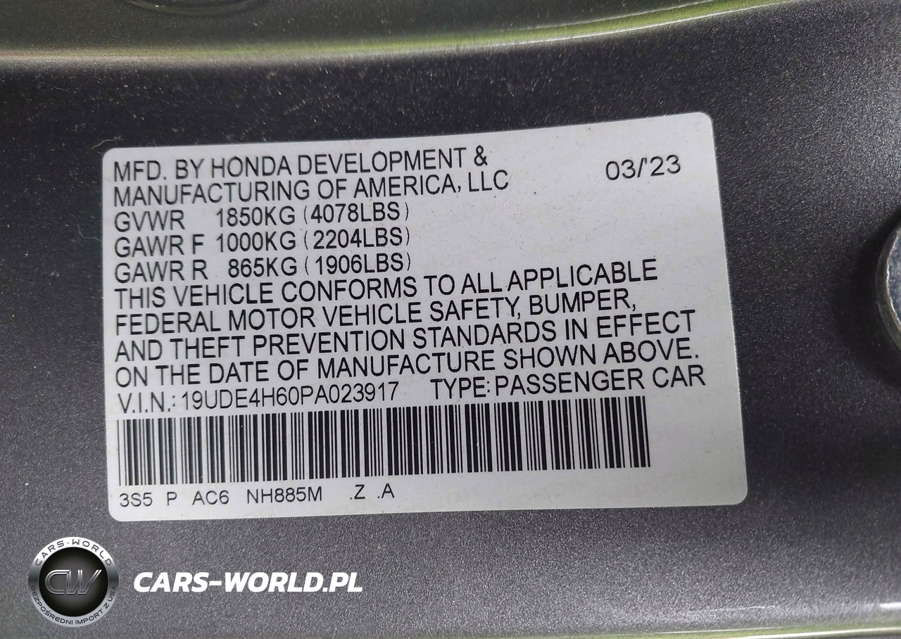 IAAI Nr: I-44641755 VIN: 19UDE4H60PA023917 Port: Indianapolis, IN
