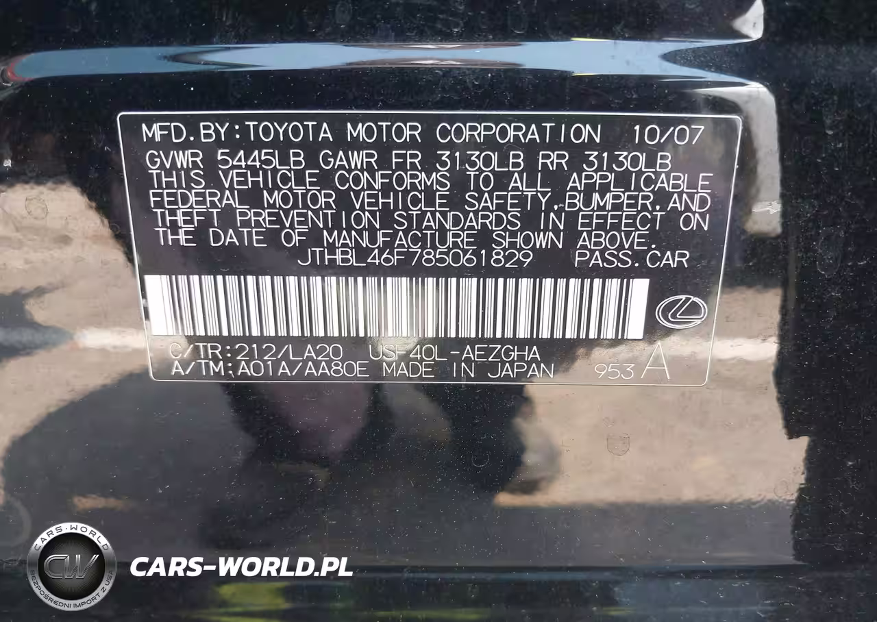 IAAI Nr: I-44642370 VIN: JTHBL46F785061829 Port: Savannah, GA