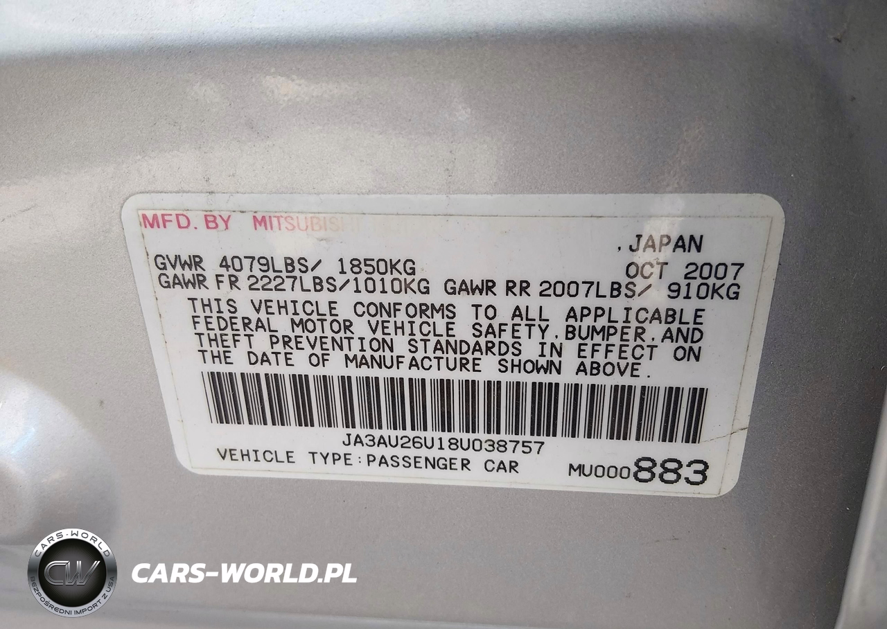 IAAI Nr: I-44644578 VIN: JA3AU26U18U038757 Port: Indianapolis, IN