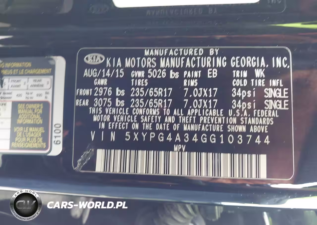 IAAI Nr: I-44645832 VIN: 5XYPG4A34GG103744 Port: Savannah, GA