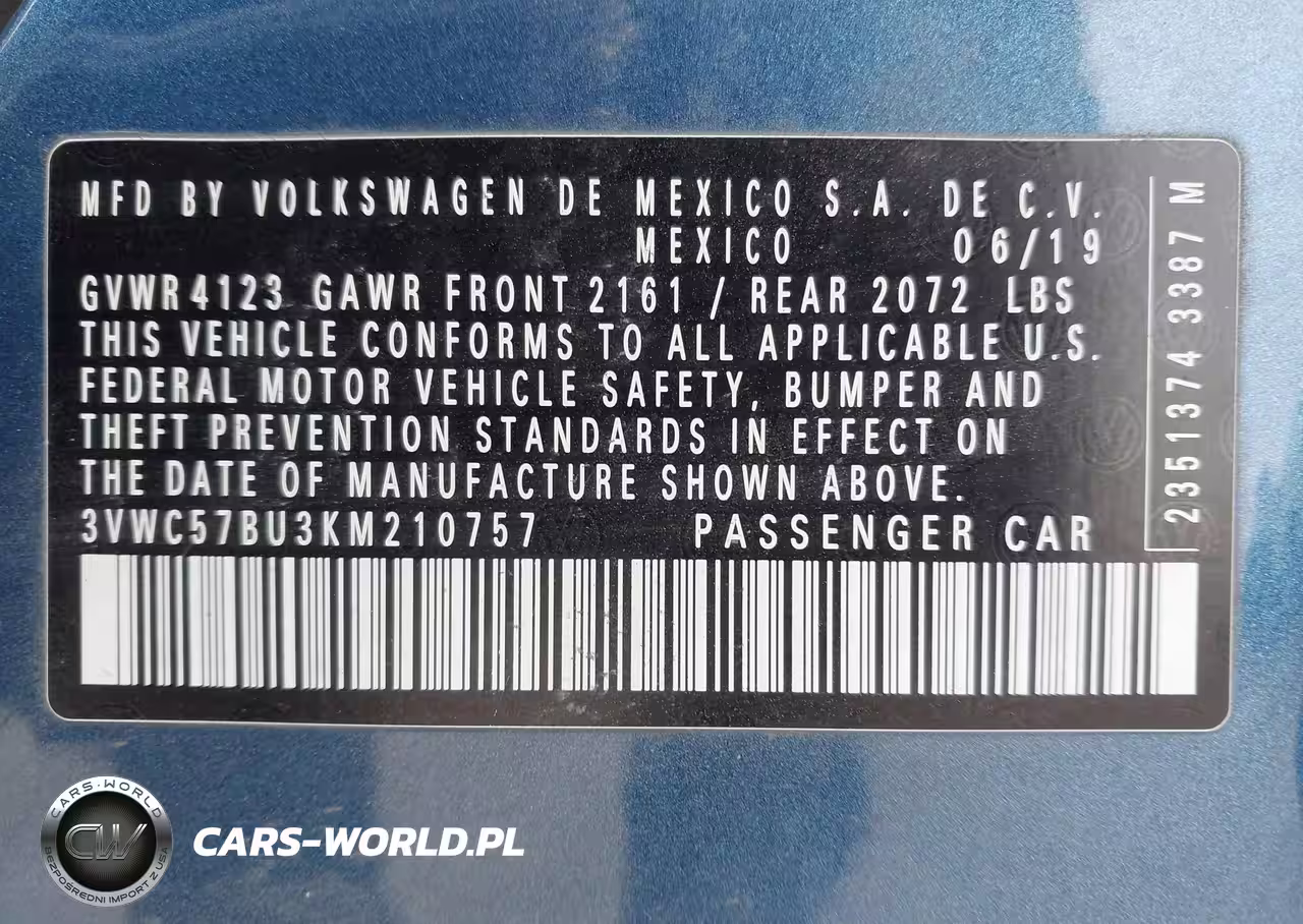 IAAI Nr: I-44646180 VIN: 3VWC57BU3KM210757 Port: Elizabeth, NJ