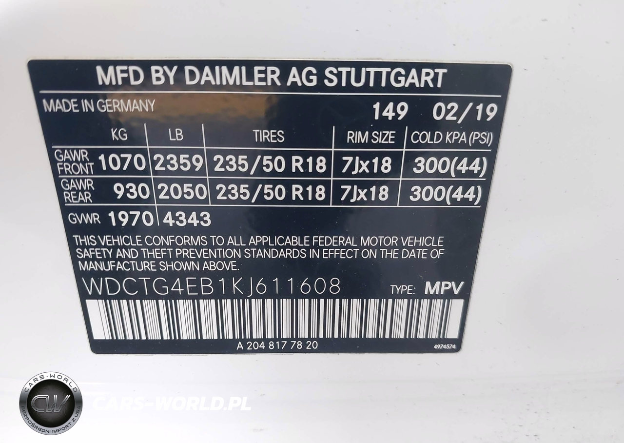 IAAI Nr: I-44646243 VIN: WDCTG4EB1KJ611608 Port: Los Angeles, CA