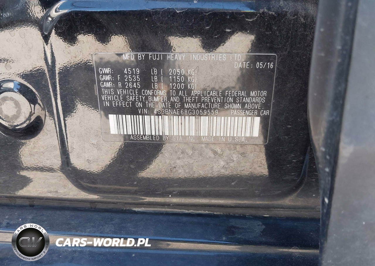 IAAI Nr: I-44646353 VIN: 4S3BNAE68G3059559 Port: Los Angeles, CA