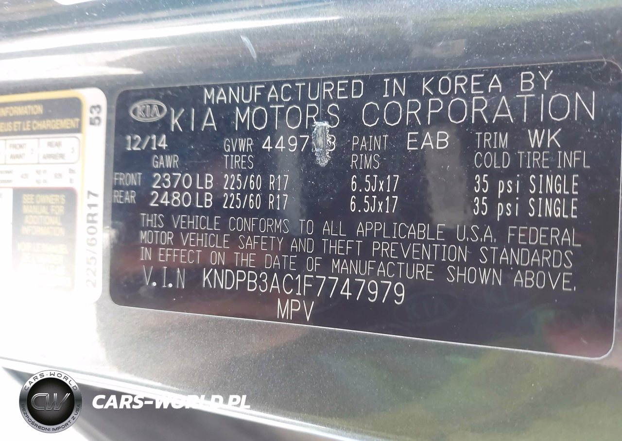 IAAI Nr: I-44646359 VIN: KNDPB3AC1F7747979 Port: Indianapolis, IN