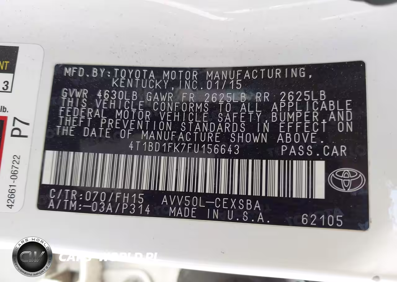 IAAI Nr: I-44646566 VIN: 4T1BD1FK7FU156643 Port: Savannah, GA