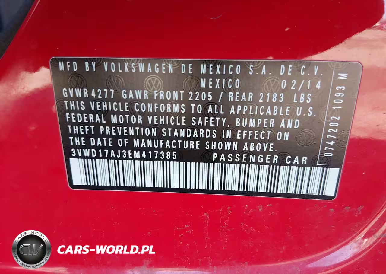 IAAI Nr: I-44646586 VIN: 3VWD17AJ3EM417385 Port: Elizabeth, NJ