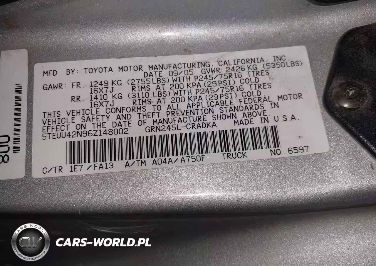 IAAI Nr: I-44646594 VIN: 5TEUU42N96Z148002 Port: Elizabeth, NJ