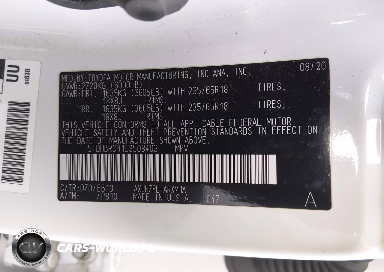 IAAI Nr: I-44646648 VIN: 5TDHBRCH1LS508403 Port: Los Angeles, CA