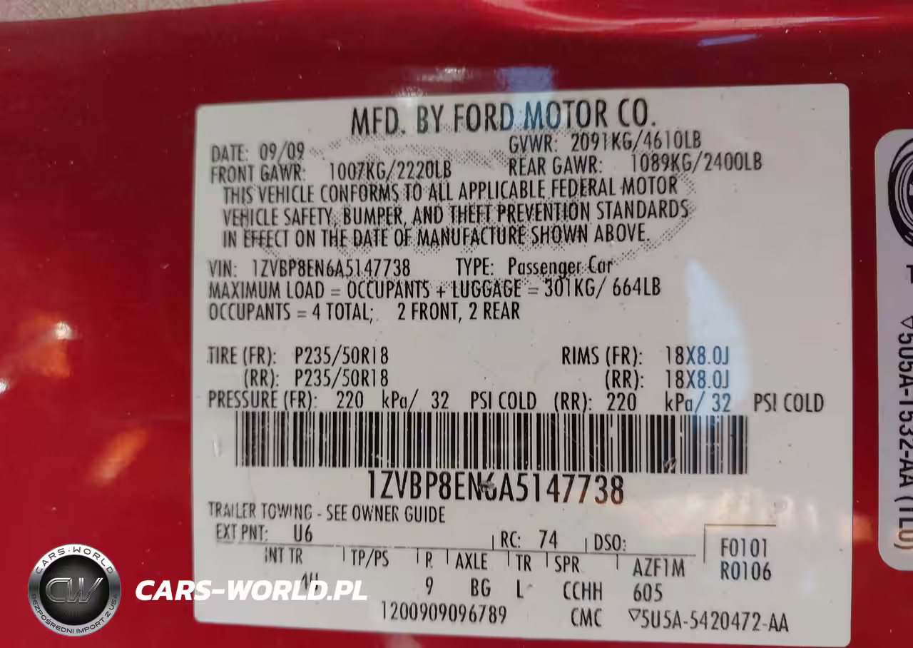 IAAI Nr: I-44647846 VIN: 1ZVBP8EN6A5147738 Port: Los Angeles, CA