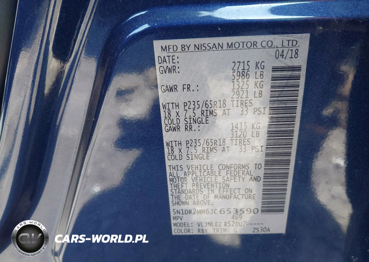 IAAI Nr: I-44648202 VIN: 5N1DR2MM6JC653590 Port: Elizabeth, NJ