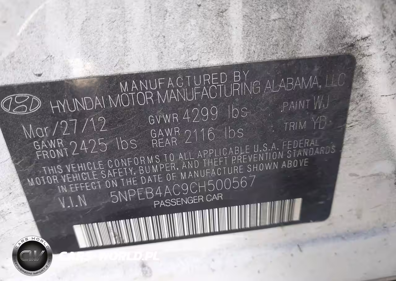 IAAI Nr: I-44649079 VIN: 5NPEB4AC9CH500567 Port: Los Angeles, CA