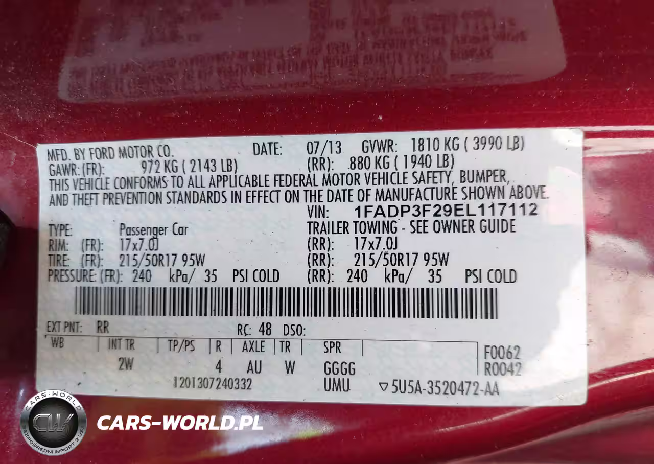 IAAI Nr: I-44649151 VIN: 1FADP3F29EL117112 Port: Indianapolis, IN