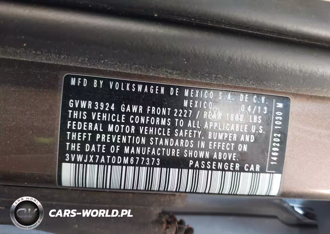 IAAI Nr: I-44649370 VIN: 3VWJX7AT0DM677373 Port: Houston, TX