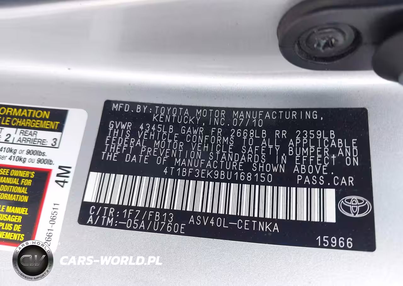IAAI Nr: I-44649596 VIN: 4T1BF3EK9BU168150 Port: Savannah, GA