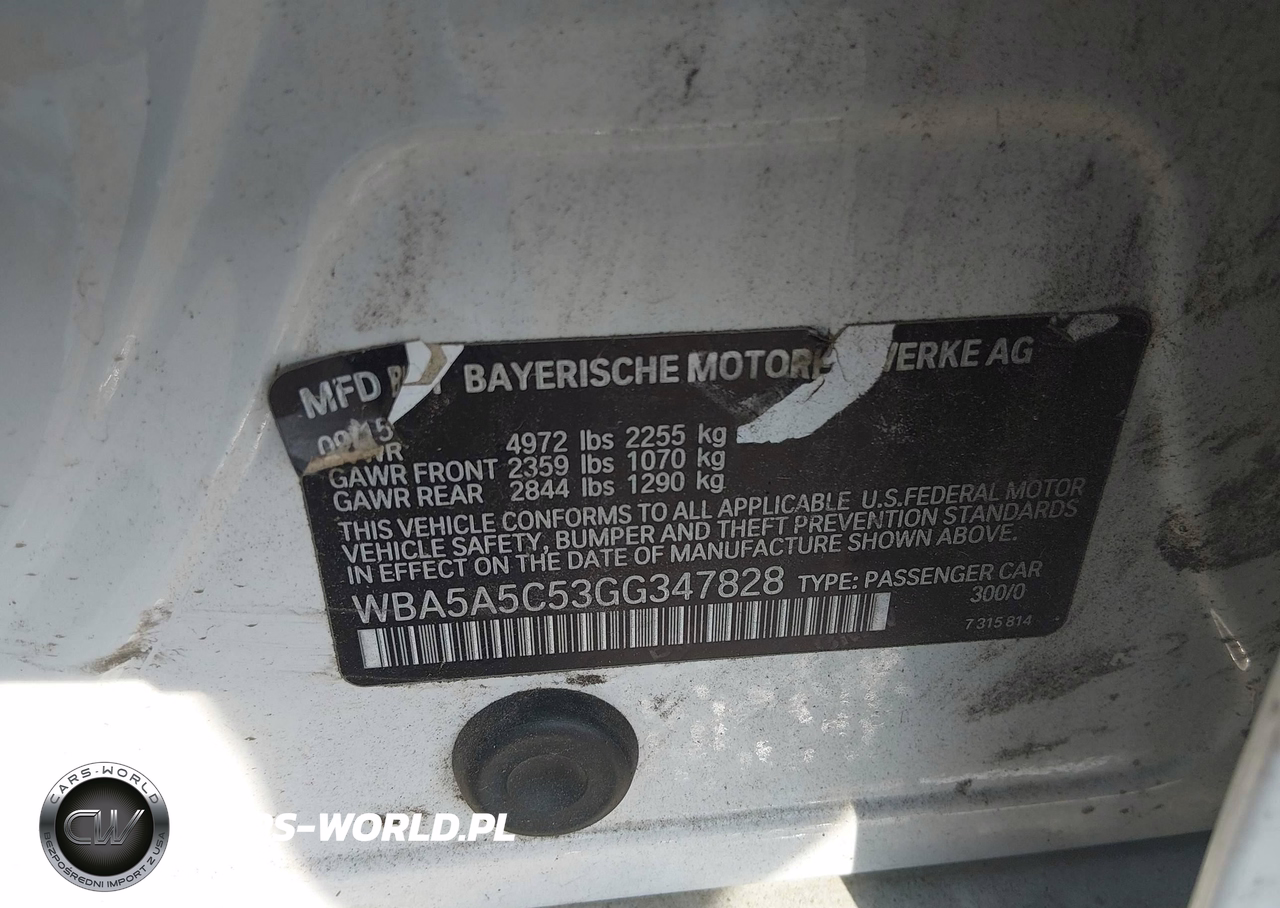 IAAI Nr: I-44650178 VIN: WBA5A5C53GG347828 Port: Savannah, GA