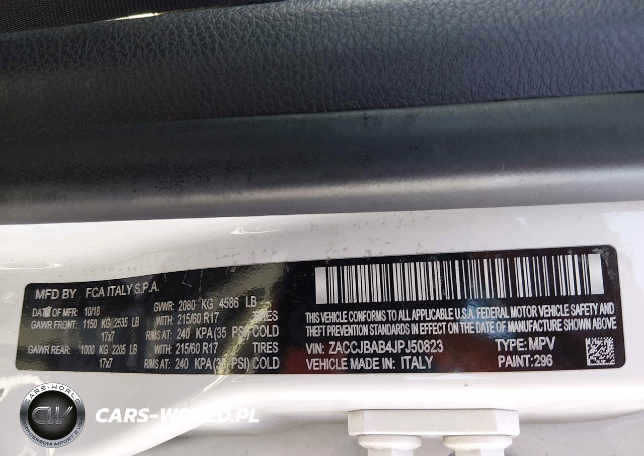 IAAI Nr: I-44650199 VIN: ZACCJBAB4JPJ50823 Port: Indianapolis, IN