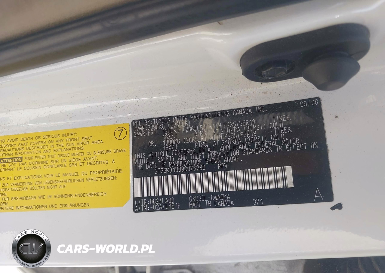 IAAI Nr: I-44650274 VIN: 2T2GK31U09C076280 Port: Savannah, GA