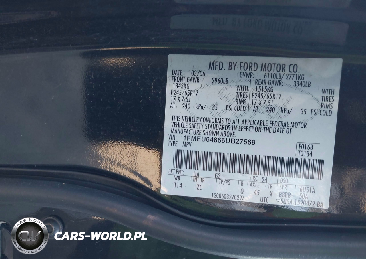 IAAI Nr: I-44650277 VIN: 1FMEU64866UB27569 Port: Savannah, GA