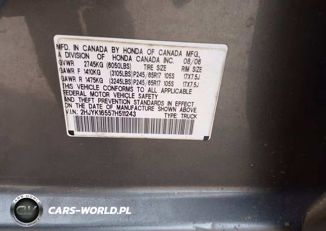 Główne zdjęcie 2007 Honda Ridgeline Rtl