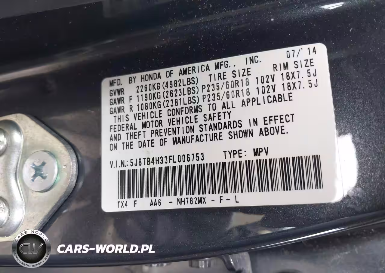 IAAI Nr: I-44650601 VIN: 5J8TB4H33FL006753 Port: Elizabeth, NJ