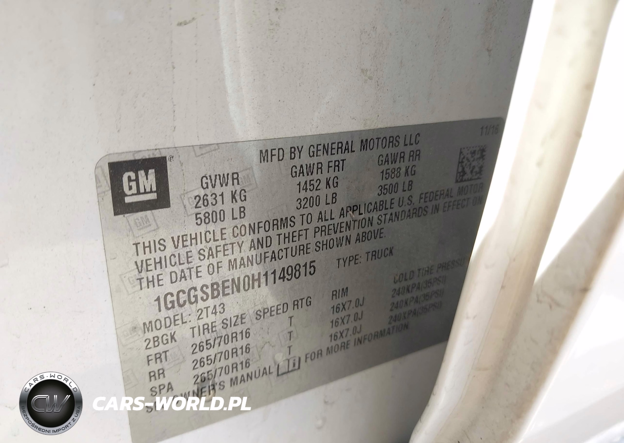 IAAI Nr: I-44651211 VIN: 1GCGSBEN0H1149815 Port: Los Angeles, CA
