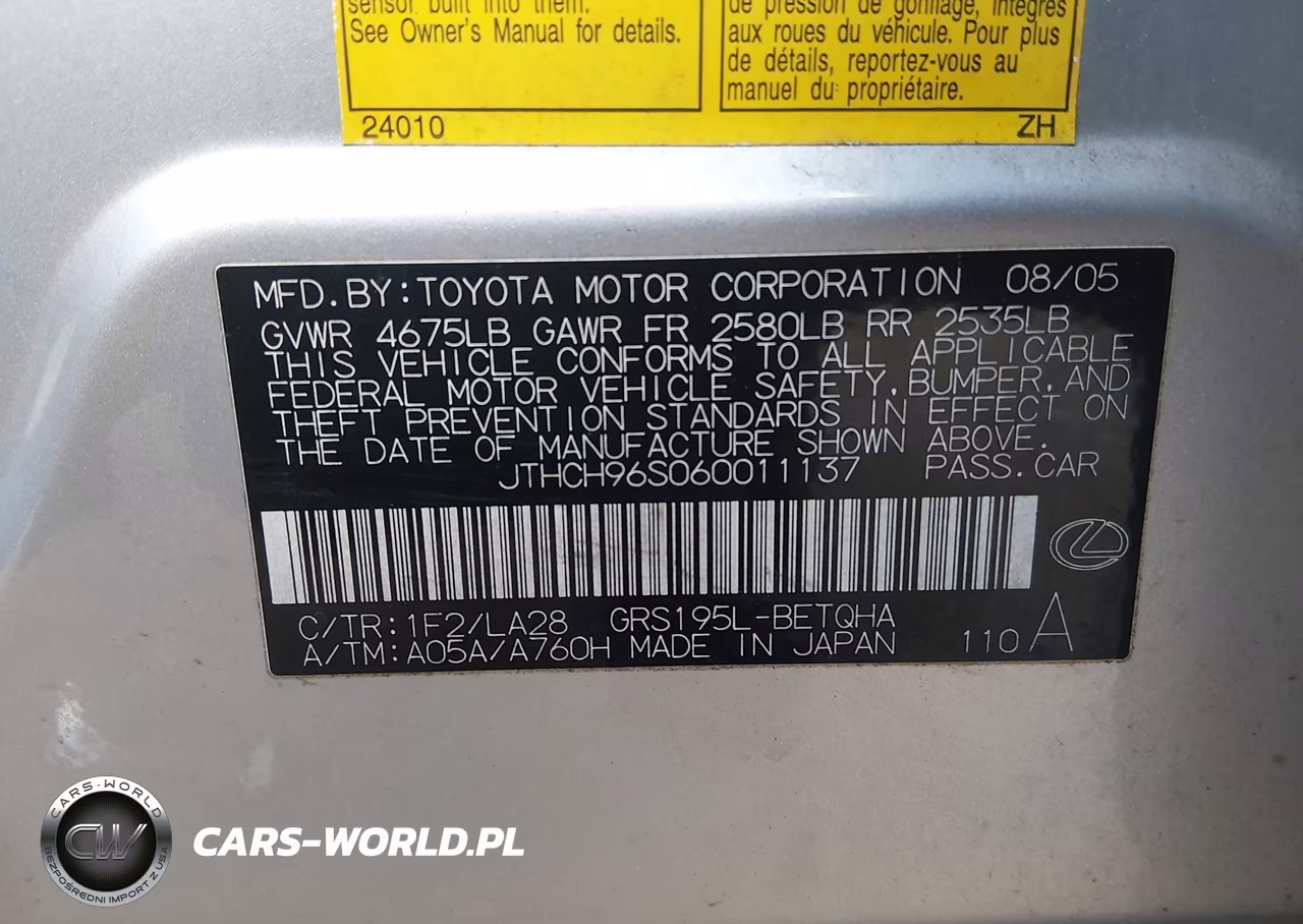 IAAI Nr: I-44655773 VIN: JTHCH96S060011137 Port: Elizabeth, NJ