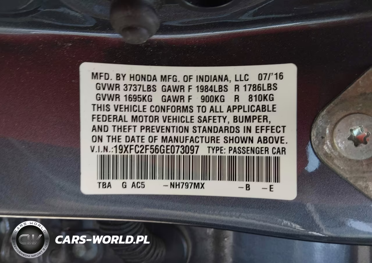 IAAI Nr: I-44659037 VIN: 19XFC2F56GE073097 Port: Savannah, GA
