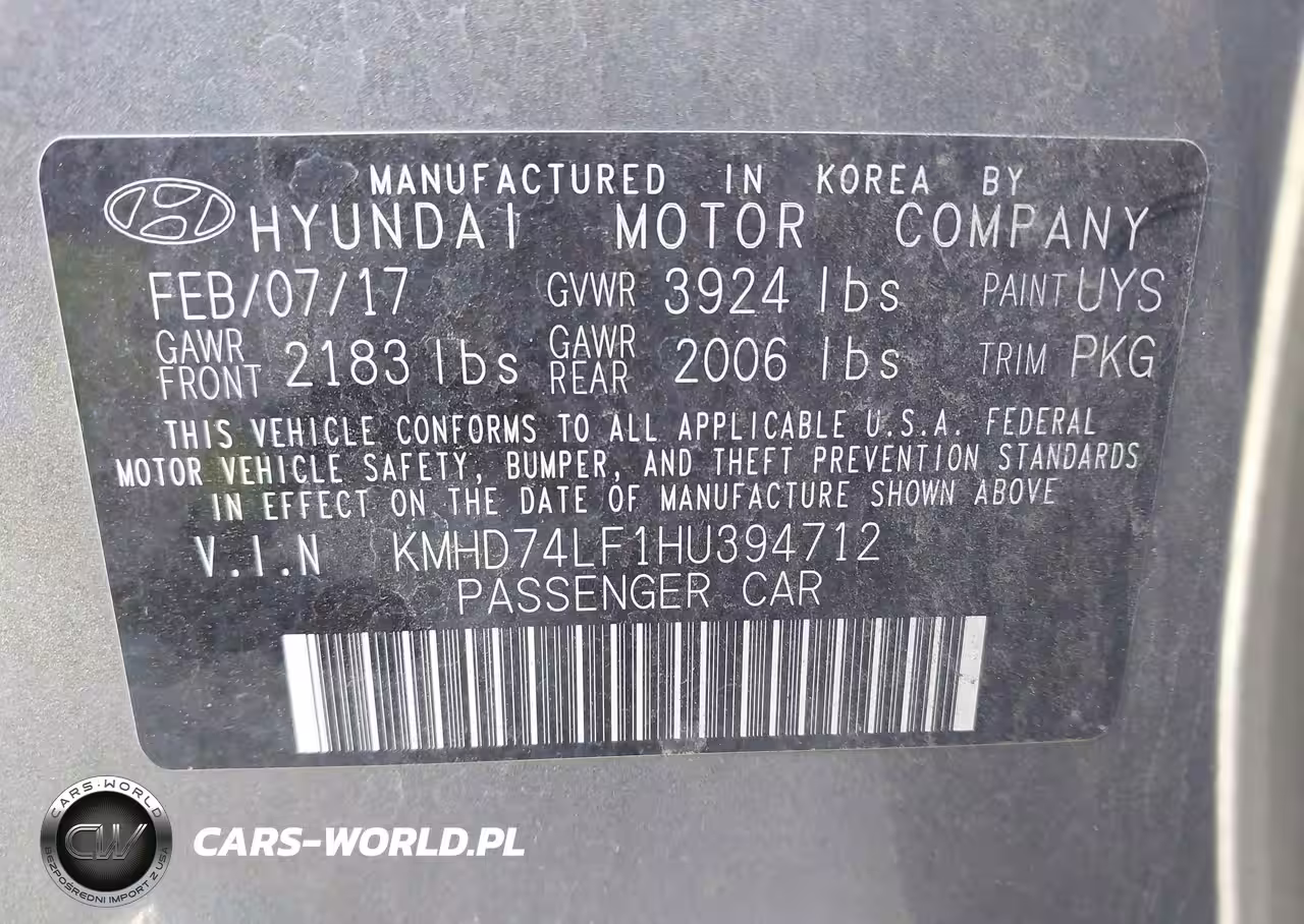 IAAI Nr: I-44659270 VIN: KMHD74LF1HU394712 Port: Los Angeles, CA