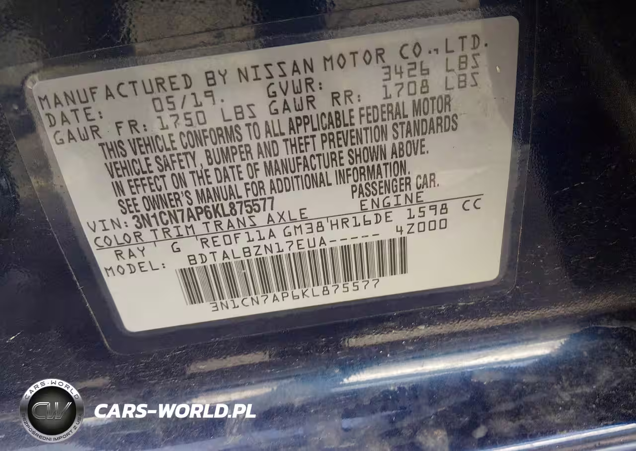 IAAI Nr: I-44659871 VIN: 3N1CN7AP6KL875577 Port: Savannah, GA