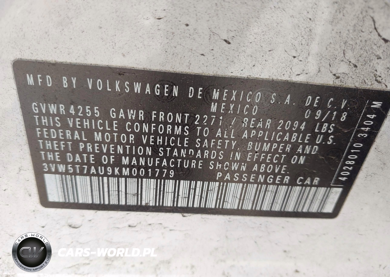 IAAI Nr: I-44660112 VIN: 3VW5T7AU9KM001779 Port: Elizabeth, NJ