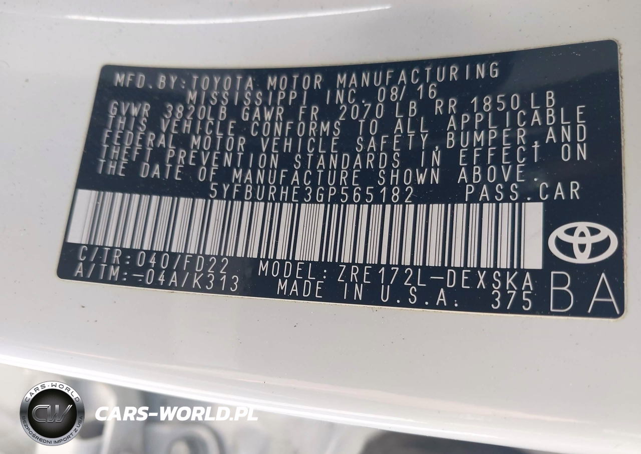 IAAI Nr: I-44661129 VIN: 5YFBURHE3GP565182 Port: Savannah, GA