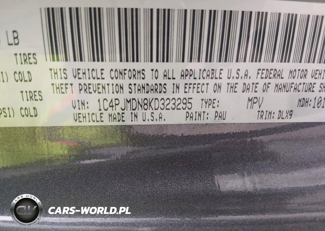 IAAI Nr: I-44661233 VIN: 1C4PJMDN8KD323295 Port: Indianapolis, IN