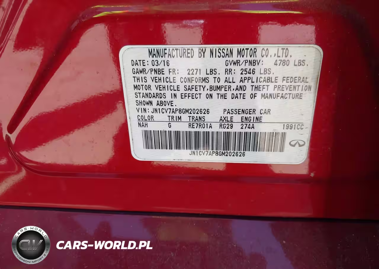 IAAI Nr: I-44662447 VIN: JN1CV7AP8GM202626 Port: Savannah, GA