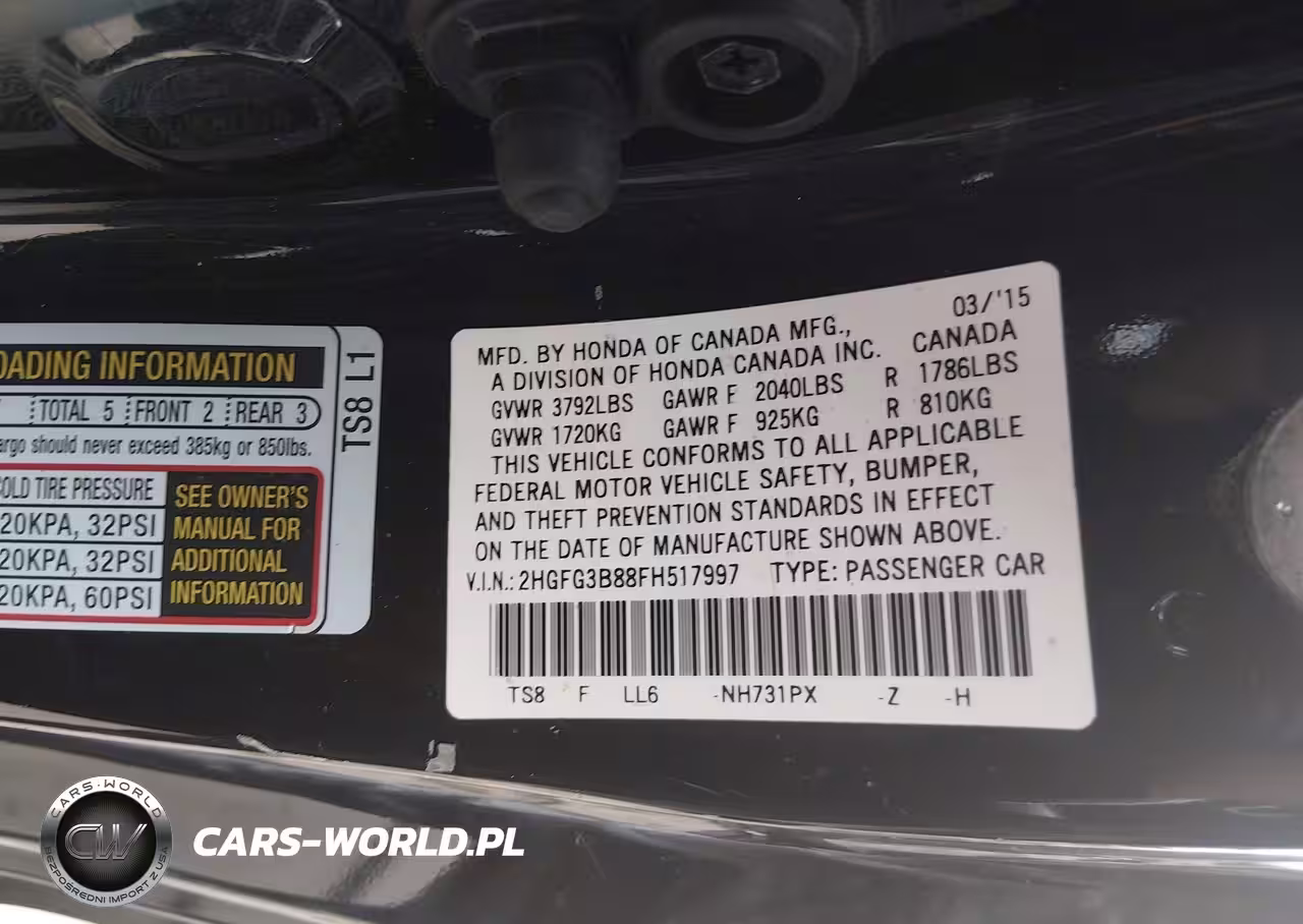 IAAI Nr: I-44662604 VIN: 2HGFG3B88FH517997 Port: Elizabeth, NJ