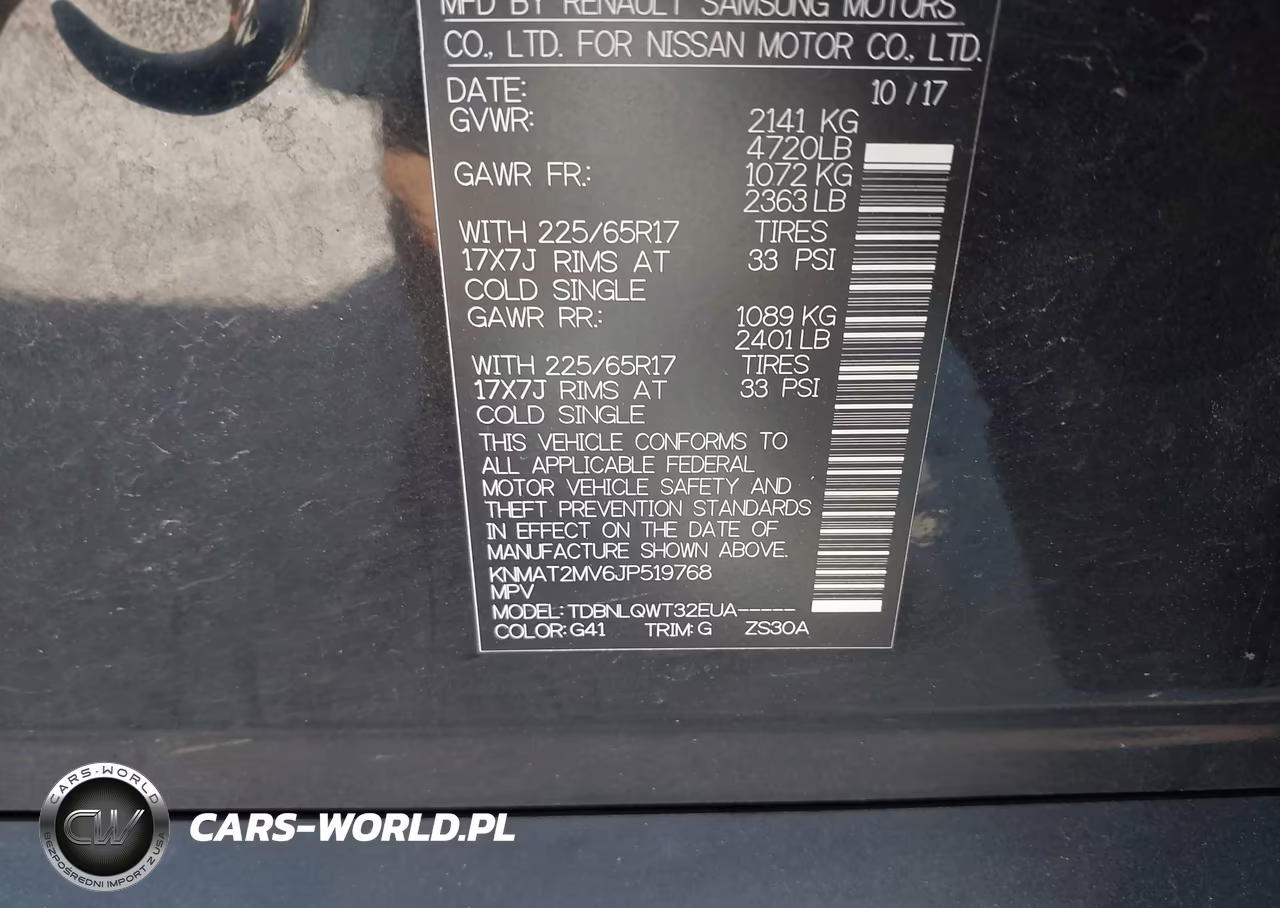 IAAI Nr: I-44663268 VIN: KNMAT2MV6JP519768 Port: Savannah, GA