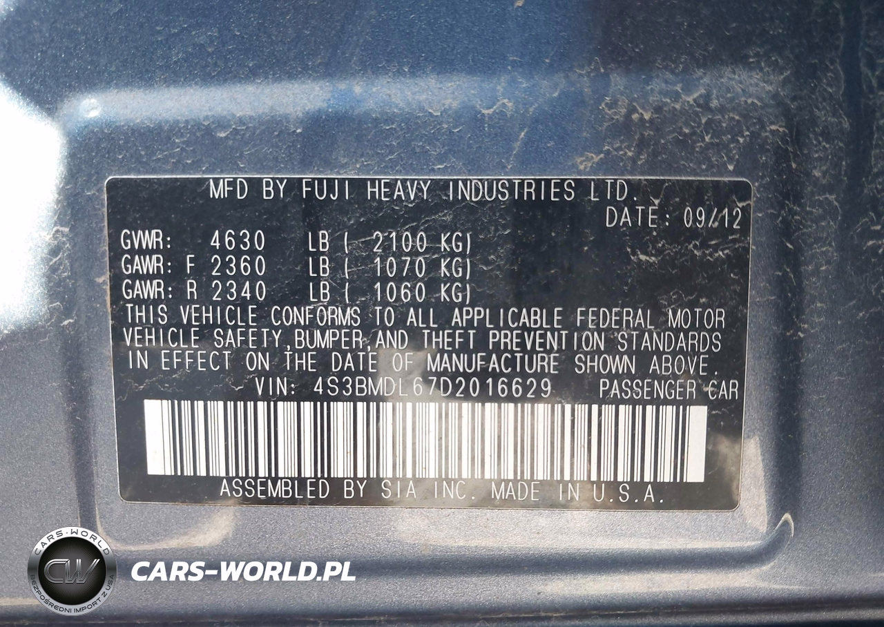 IAAI Nr: I-44663298 VIN: 4S3BMDL67D2016629 Port: Indianapolis, IN