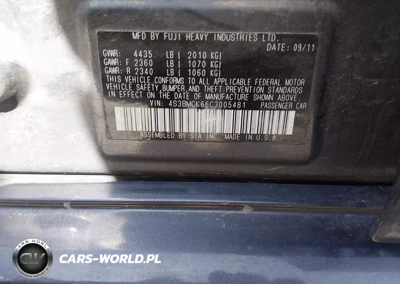 IAAI Nr: I-44663637 VIN: 4S3BMCK66C3005481 Port: Los Angeles, CA