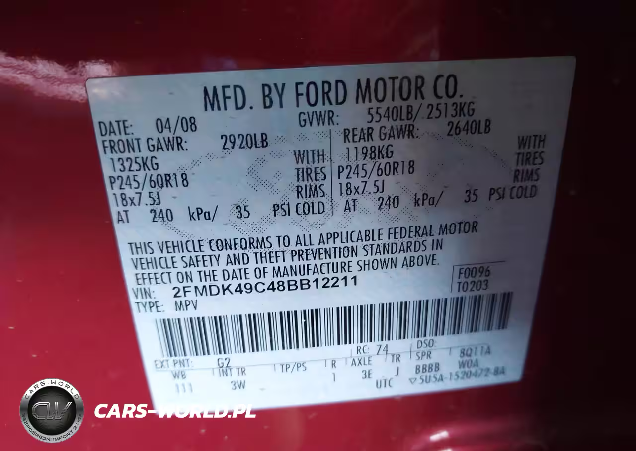 IAAI Nr: I-44663743 VIN: 2FMDK49C48BB12211 Port: Los Angeles, CA