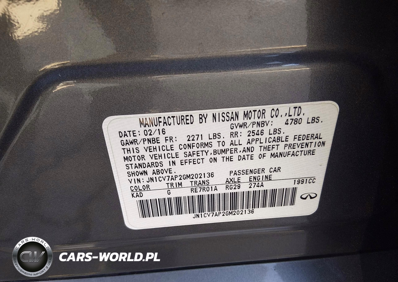 IAAI Nr: I-44664335 VIN: JN1CV7AP2GM202136 Port: Los Angeles, CA