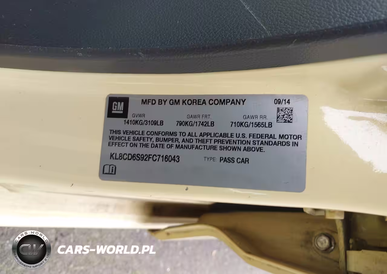 IAAI Nr: I-44664466 VIN: KL8CD6S92FC716043 Port: Los Angeles, CA