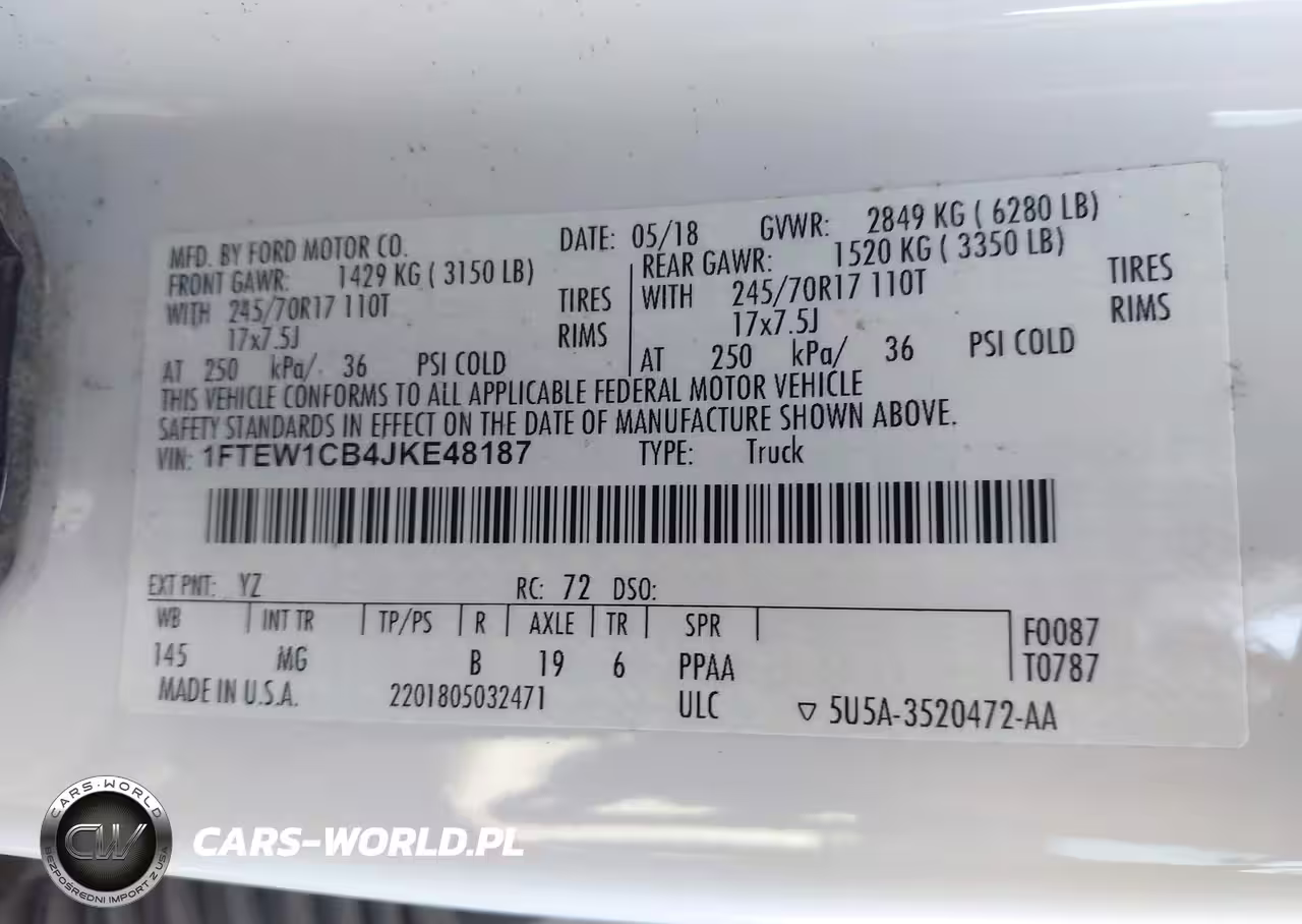IAAI Nr: I-44664661 VIN: 1FTEW1CB4JKE48187 Port: Los Angeles, CA