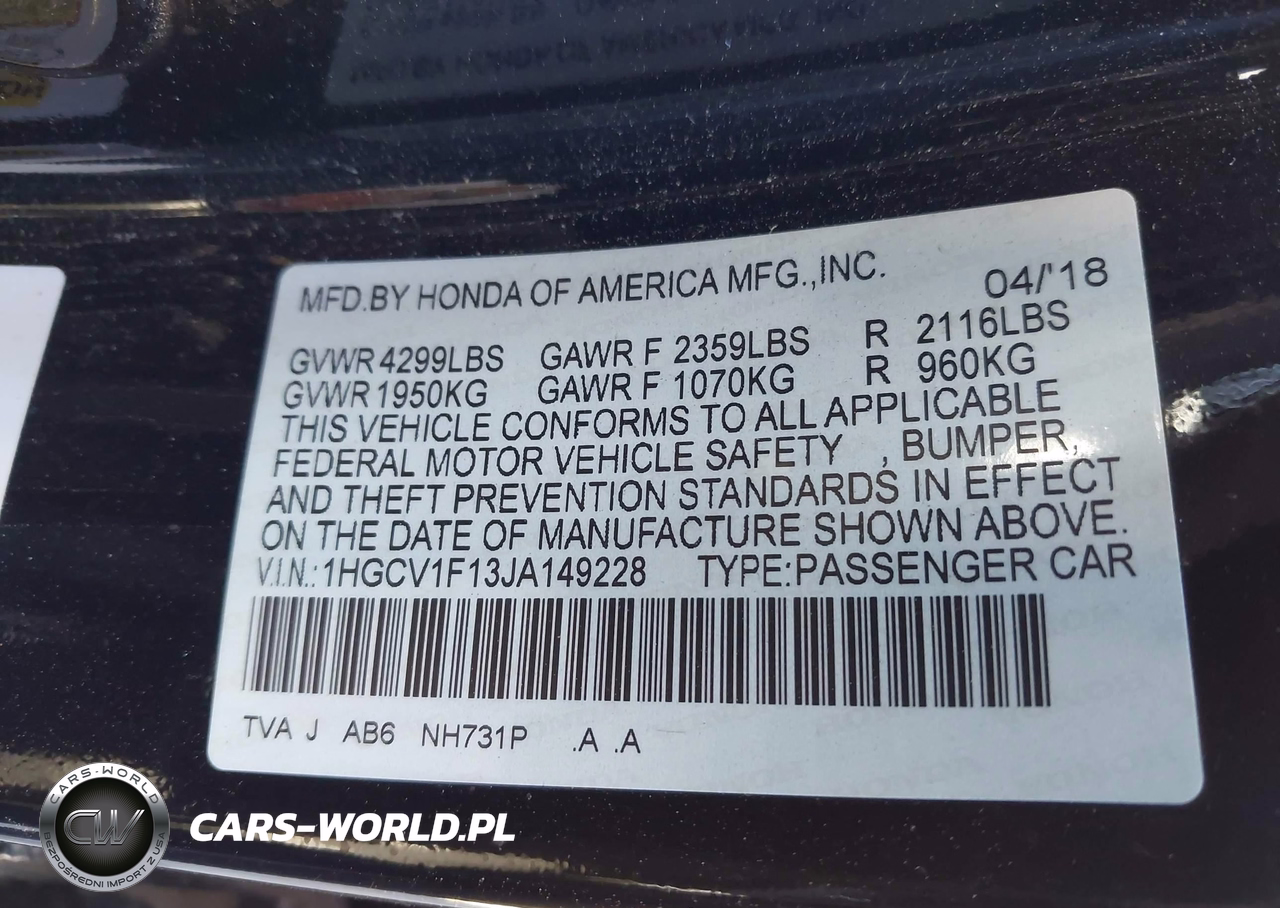 IAAI Nr: I-44664944 VIN: 1HGCV1F13JA149228 Port: Los Angeles, CA