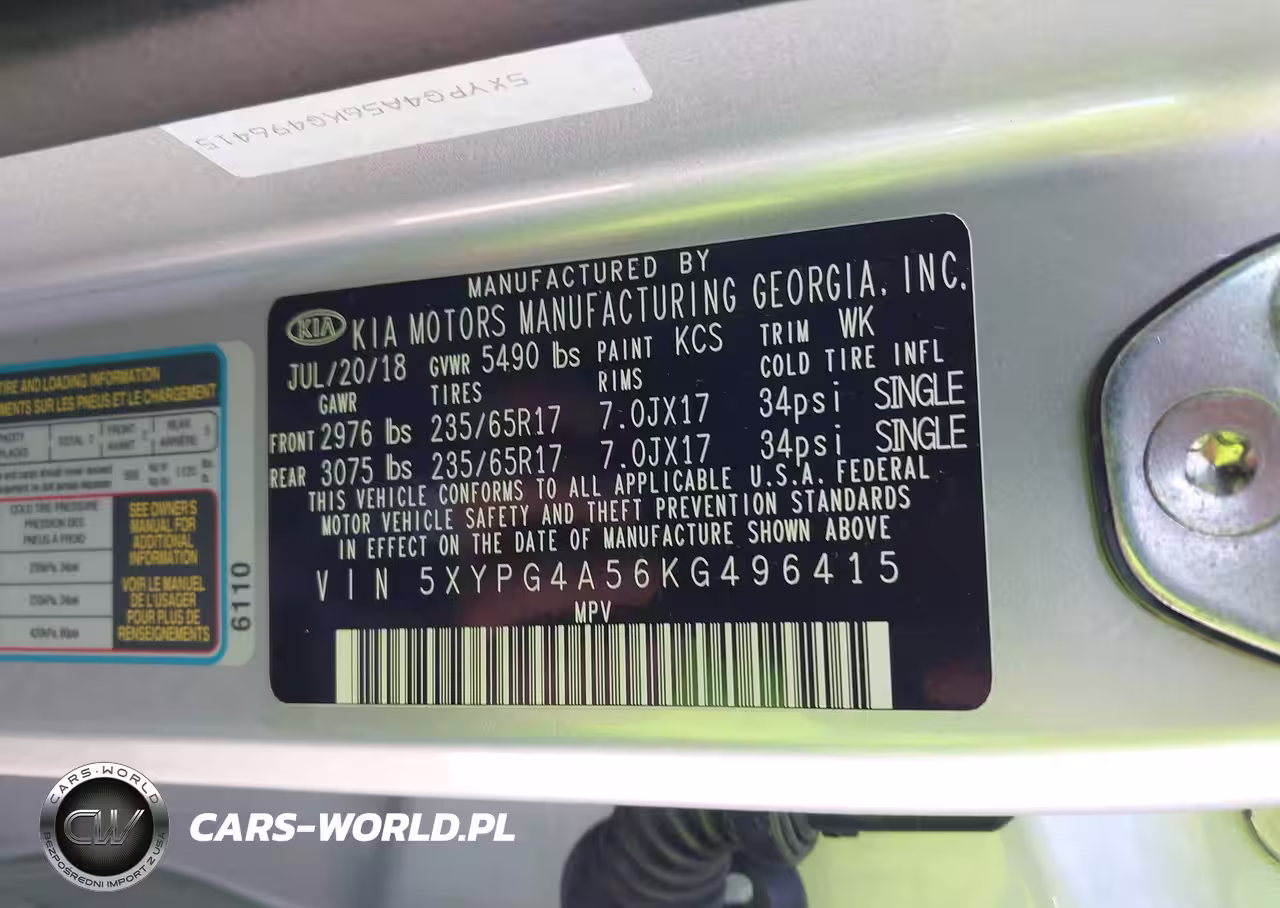 IAAI Nr: I-44665668 VIN: 5XYPG4A56KG496415 Port: Savannah, GA