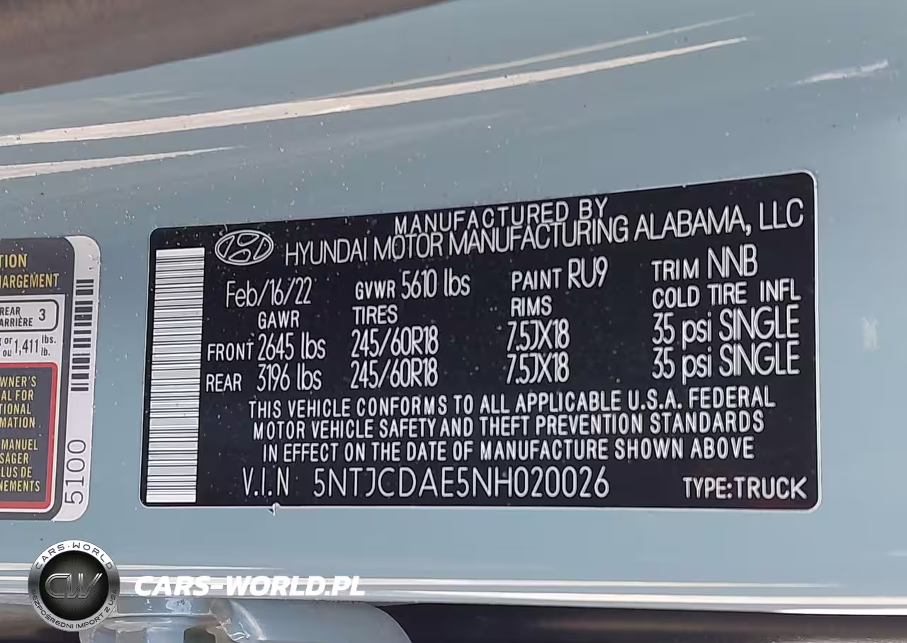 IAAI Nr: I-44665753 VIN: 5NTJCDAE5NH020026 Port: Indianapolis, IN