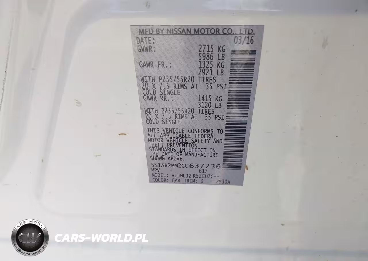 IAAI Nr: I-44666956 VIN: 5N1AR2MM2GC637236 Port: Indianapolis, IN