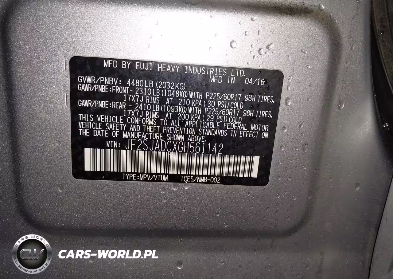 IAAI Nr: I-44667516 VIN: JF2SJADCXGH561142 Port: Los Angeles, CA