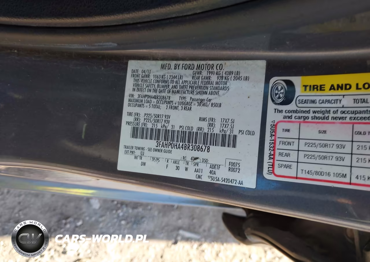 IAAI Nr: I-44667602 VIN: 3FAHP0HA4BR308678 Port: Indianapolis, IN