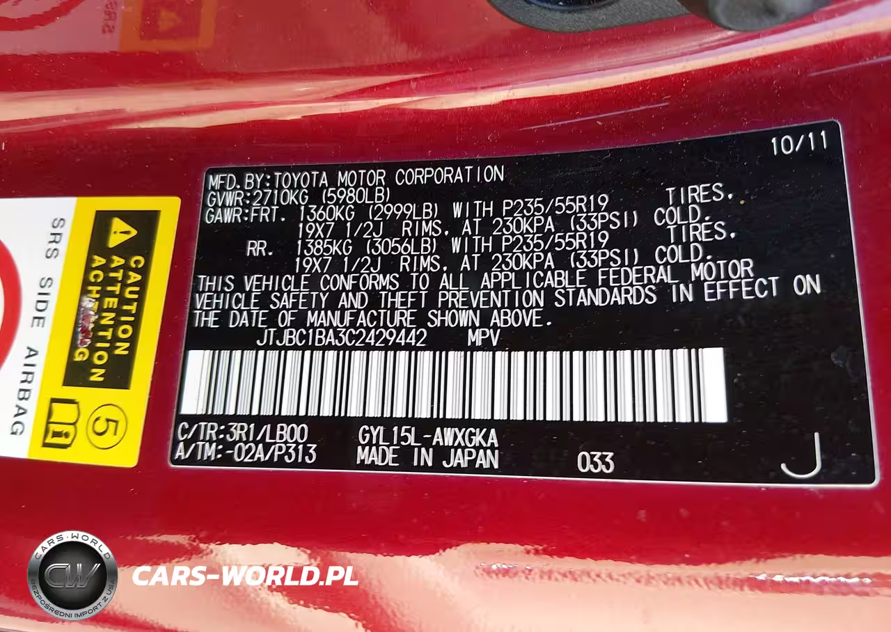 IAAI Nr: I-44667846 VIN: JTJBC1BA3C2429442 Port: Savannah, GA