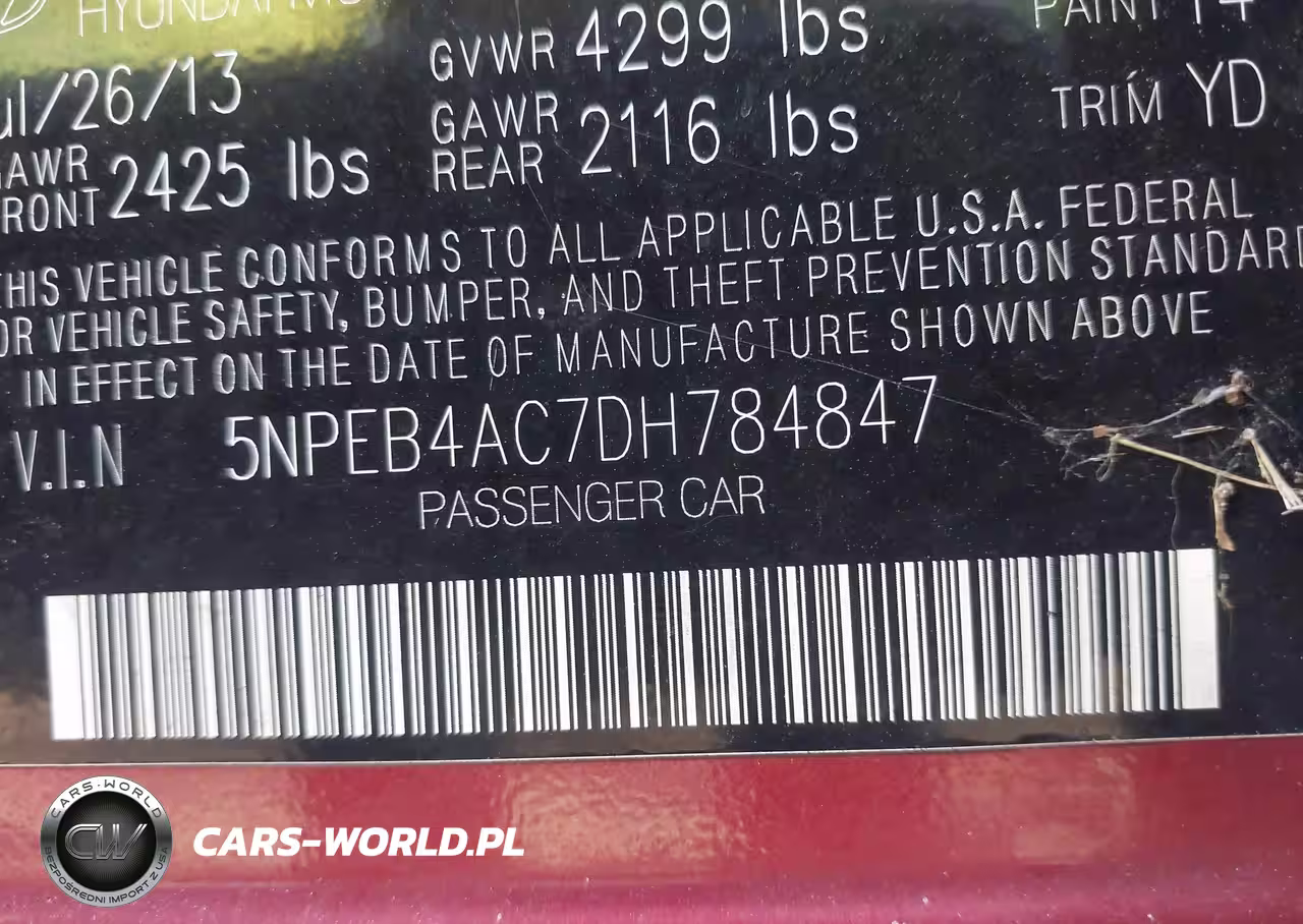 IAAI Nr: I-44668561 VIN: 5NPEB4AC7DH784847 Port: Elizabeth, NJ